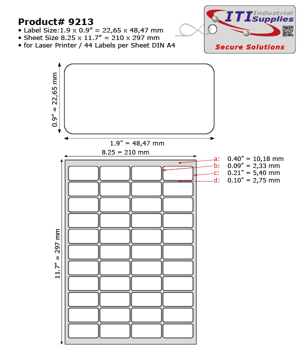 All laser labels are for factory/mill use. Labels can be imprinted with standard sheet laser printers like HP, Lexmark, Oki, Konica etc. All labels are made out of durable, heat resistant plastics and sticky industrial adhesives. Surface Shield Technology covers printing, chemical agents, dirt, oil peel off. For maximum compatability, even with all imported laser printers, they most are die cut in the international A4 formats.